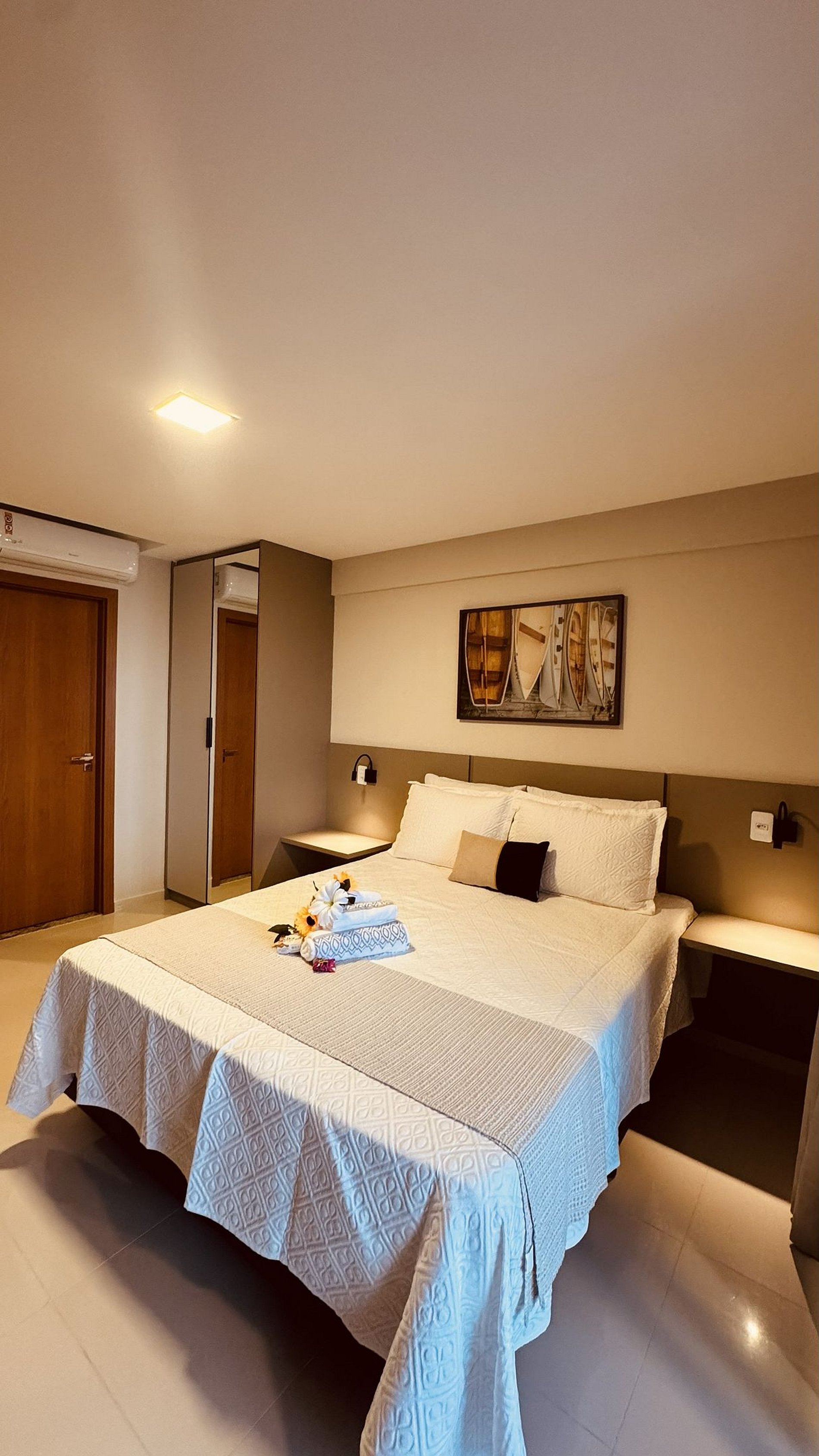 O ambiente conta com uma confortável cama de casal, decoração leve e acolhedora, ideal para quem busca tranquilidade. Destaques do espaço: