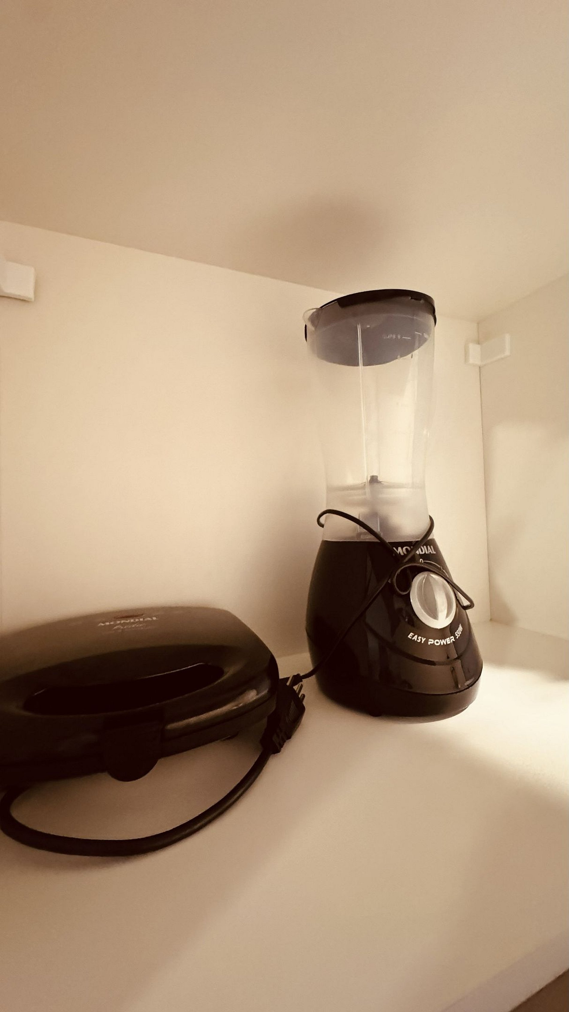 • Utensílios para pequenas refeições contemplando cafeteira, sanduicheira, liquidificador
