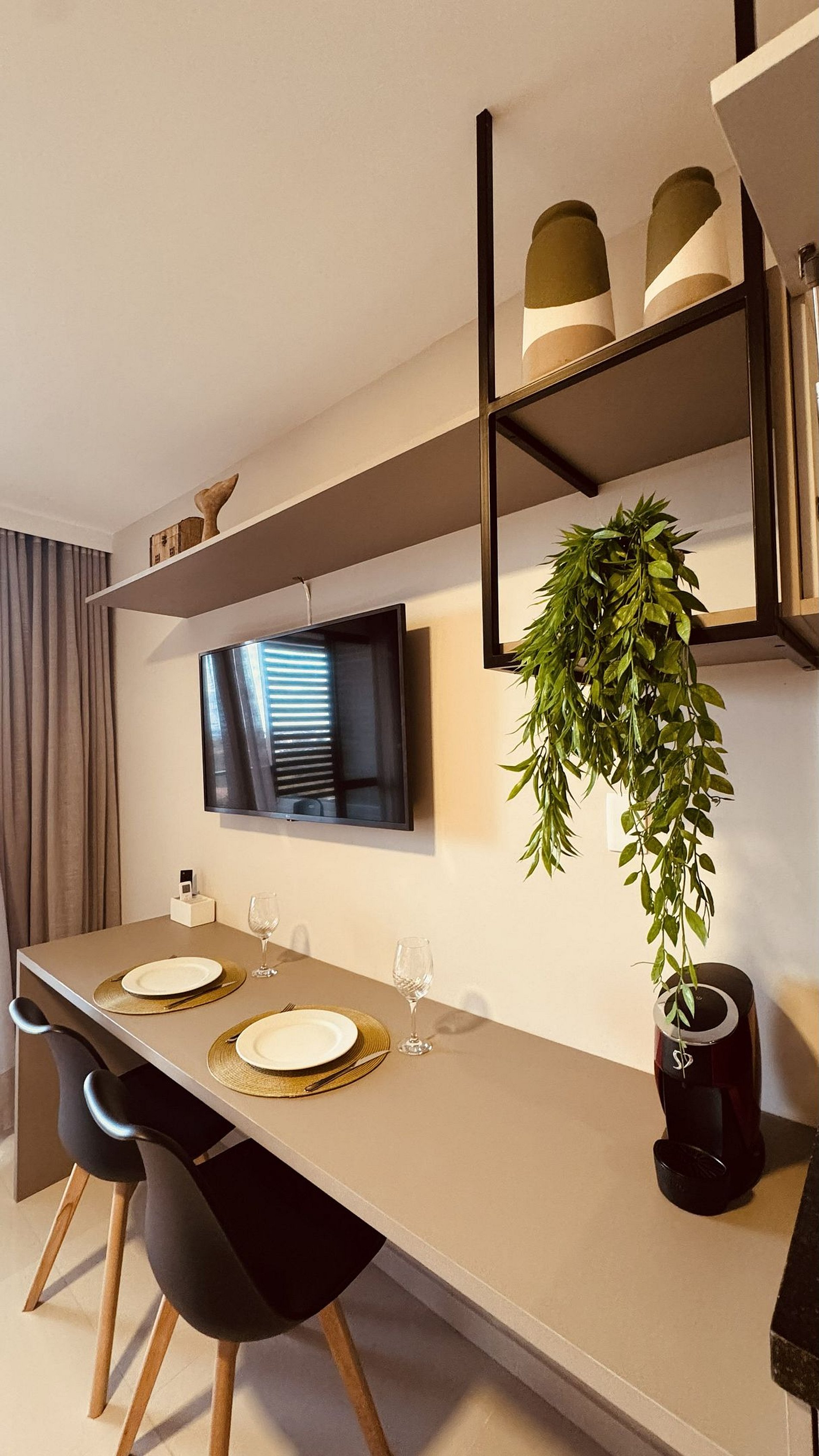Com uma decoração clean e repleta de leveza, o espaço foi cuidadosamente pensado para oferecer conforto, praticidade e uma experiência única perfeito para quem deseja relaxar ou trabalhar pertinho da praia.