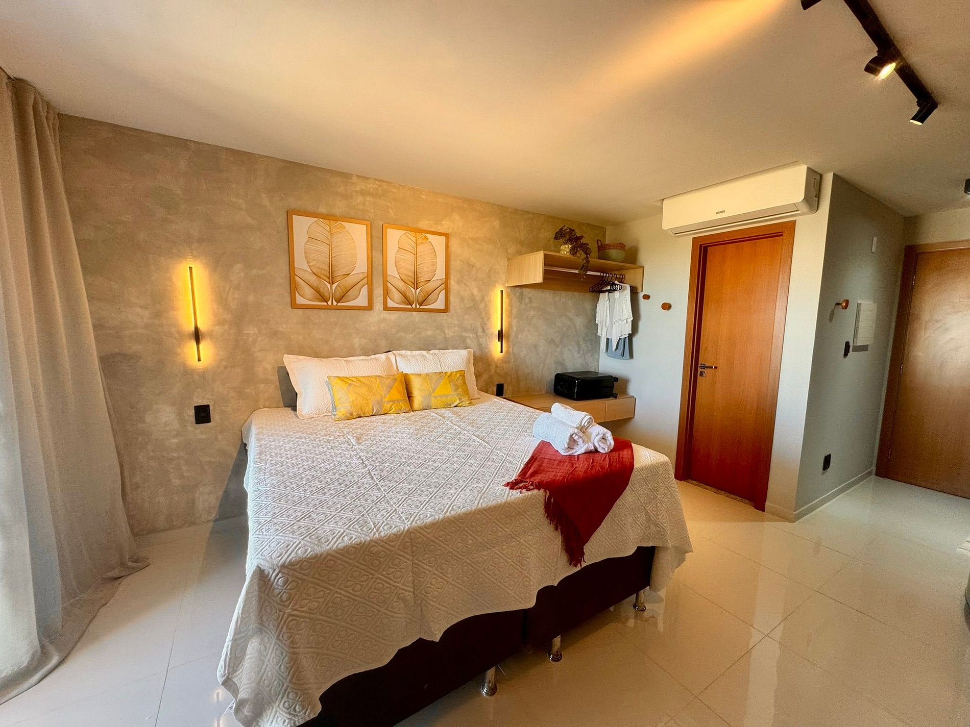 Este espaço pensado e cuidadosamente montado como nossa casa, acomoda até três pessoas ou casal com filho, oferecendo cama king size premium com cama auxiliar de solteiro, enxoval de alta qualidade com lençóis e edredom confortáveis, ar-condicionado potente de 22.000 BTUs, guarda-roupa funcional com portas e espaço para malas com cabideiro aberto