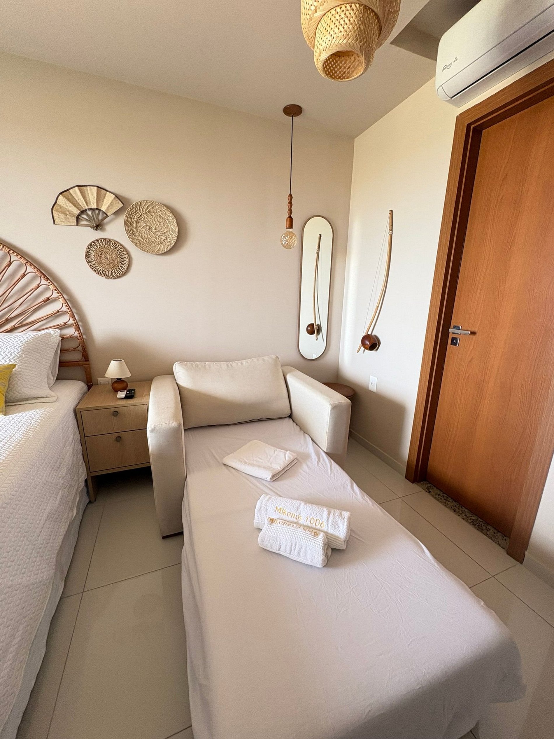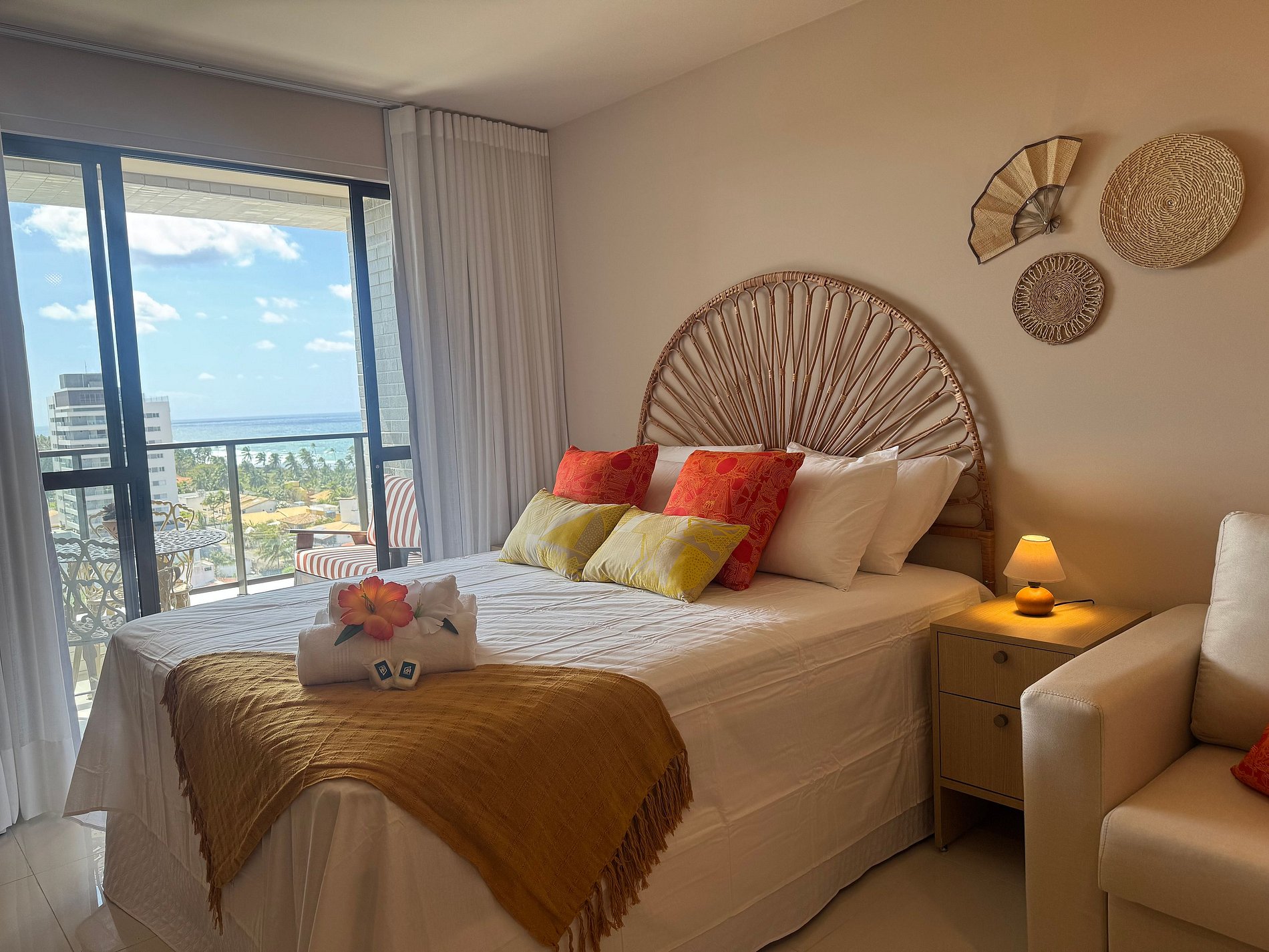 Descubra o charme deste estúdio aconchegante com vista para o mar, perfeito para momentos deliciosos. Com uma decoração em cores quentes que refletem o clima da Bahia, você terá uma experiência única. Ideal para casal ou até 3 pessoas, contendo 1 cama de casal e um sofá-cama individual, ideal para uma criança ou adolescente.