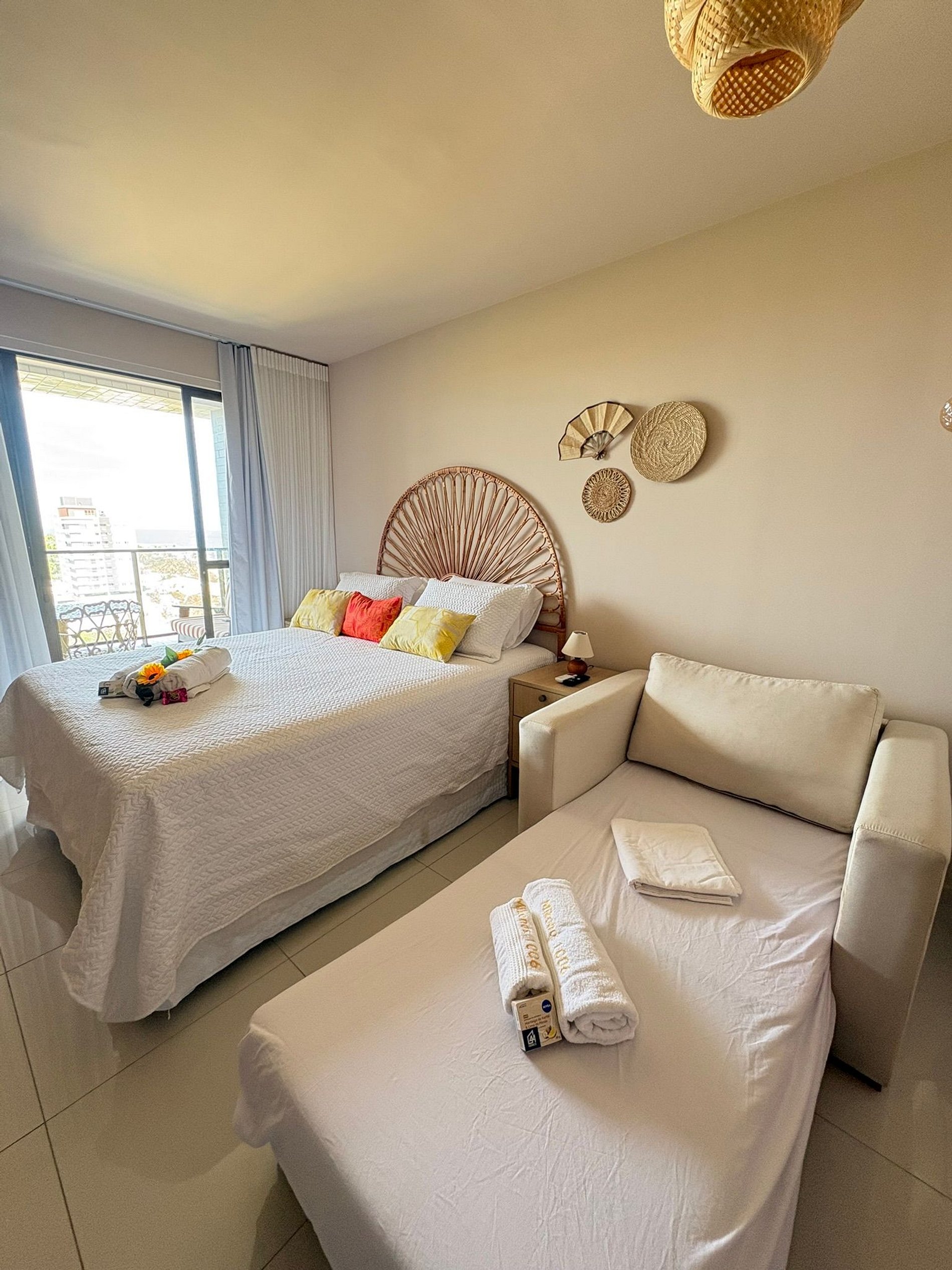 No 10º andar, com o mar à sua frente para contemplar todos os dias, este espaço foi pensado para te fazer sentir verdadeiramente na Bahia. A decoração traz leveza, aconchego e aquele clima praiano que convida a relaxar, desacelerar e aproveitar cada momento. Da varanda, com mesa e cadeiras, você pode tomar seu café apreciando a brisa e a vista do mar.